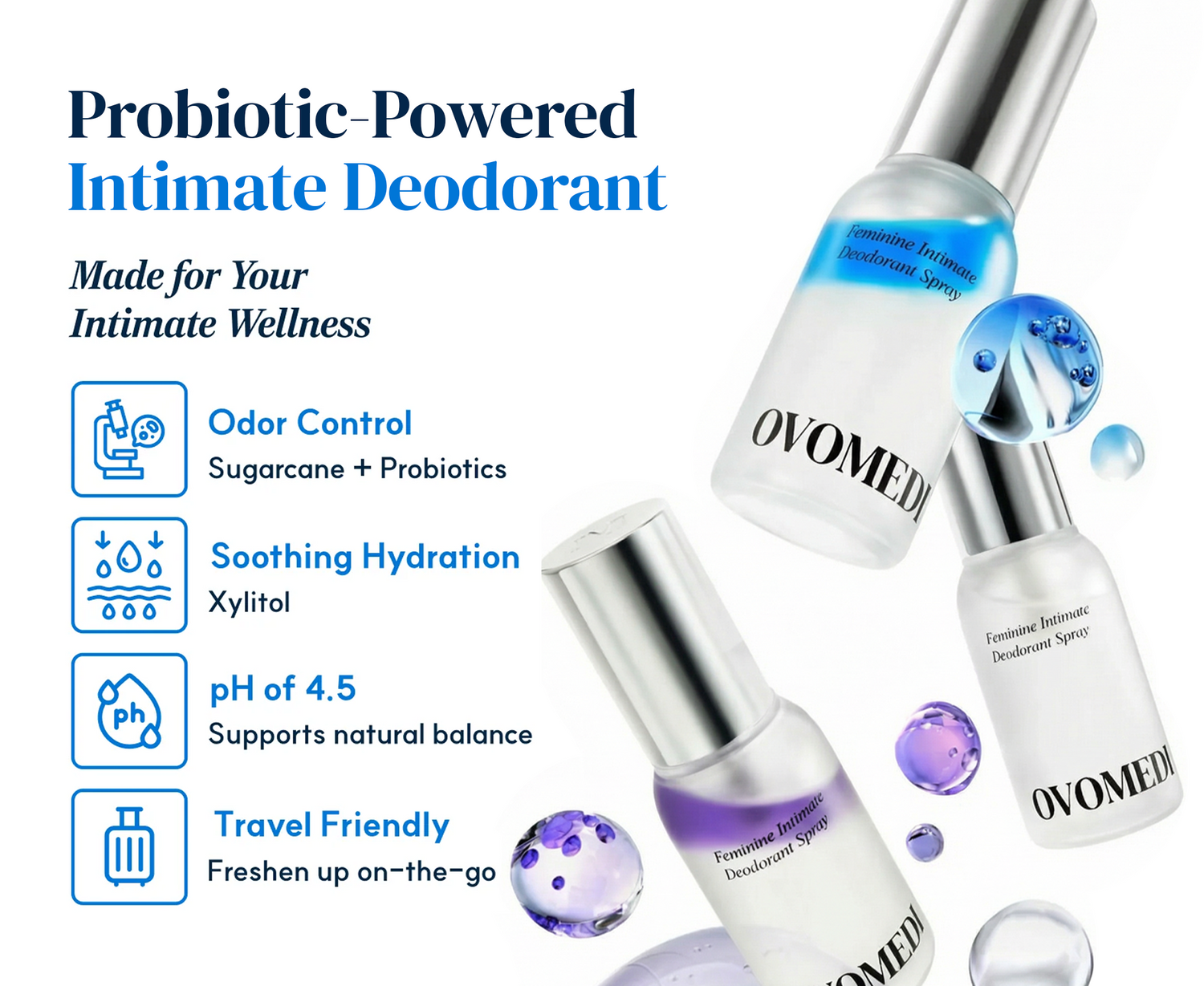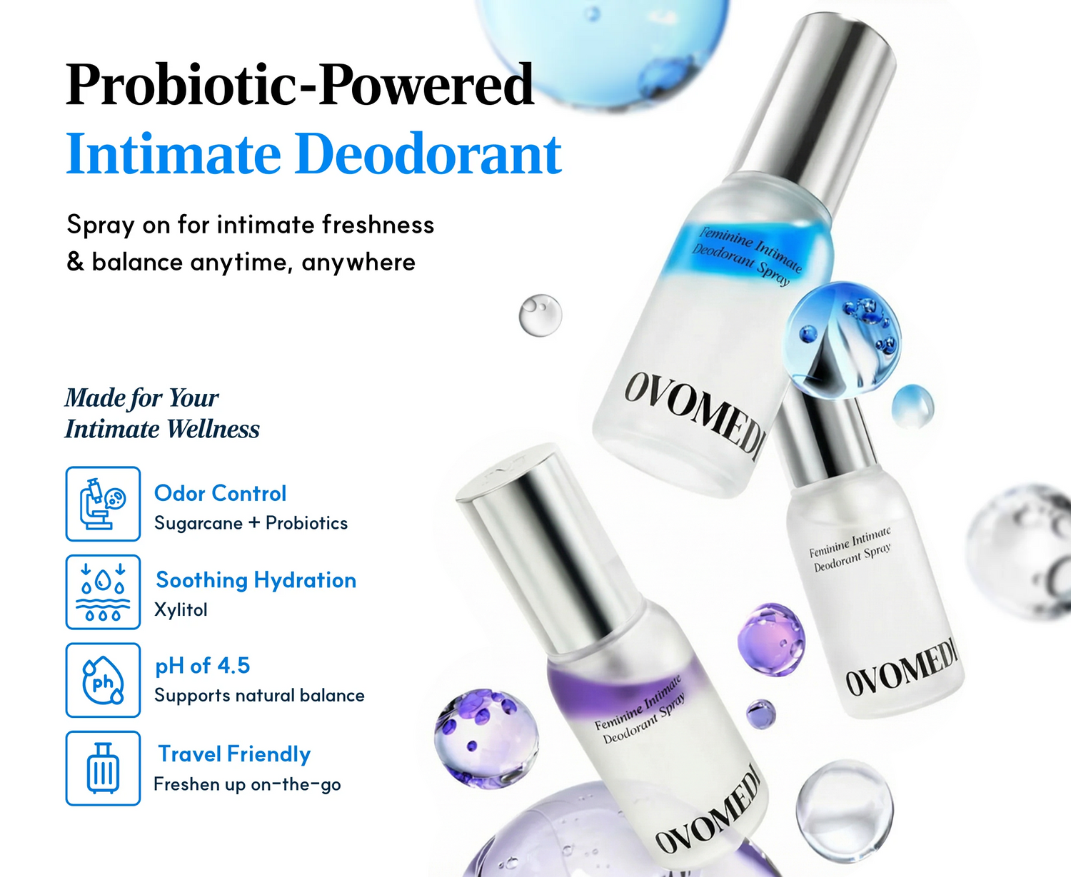 Stay confident with probiotic-powered intimate deodorant. Designed for on-the-go freshness and balance.